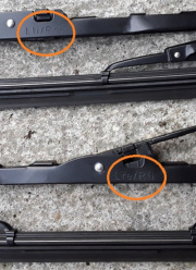 Die Wischerblätter eines W126, alle Modelle(!), haben die Mercedes Teilenummer: A 126 820 03 45 und A 126 820 04 45. Sie gelten beim Mercedes Vertragshändler inzwischen als NML (Nicht Mehr Lieferbar). Die Tatsache, dass es für Links und Rechts zwei Nummern gibt und nicht eine Nummer mit der Mengenangabe 2, legt die Vermutung nahe, dass die Wischerblätter links und rechts unterschiedlich sind. Tatsächlich ist dies der Fall: Die Metallbügel links und rechts haben eine unterschiedliche Höhe und die eingezogenen Gummis sind in ihrer Stärke unterschiedlich dick.