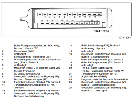 | Eingang | Drosselklappe Vollast (Pin 3) | Zündung Pos. II | Ohm | Unendlich (wenn Fahrpedal getreten) |