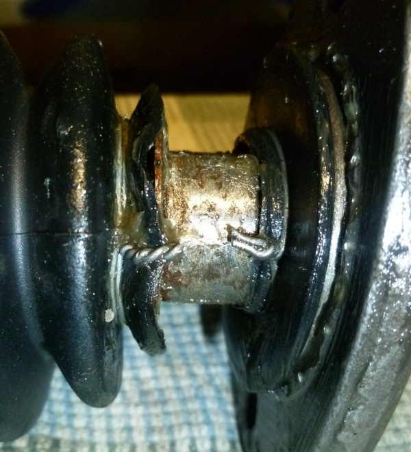 - Untere Lippe über den Steg ziehen und entweder den alten Federring aufstecken oder mit Draht sichern. Oben am dünnen Durchmesser wird ebenfalls mit Draht gesichert.