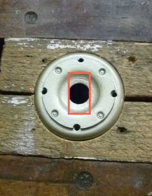 - In den Glocken sammelt sich Schmutz, der die Ablauflöcher verstopft. Mit einem Schraubendreher rauspicken. Man sieht auch schön die Gegenform zu den Schlüsselflächen an der Kolbenstange. Die Glocken kann man sandstrahlen und mit Rostschutzfarbe lackieren.