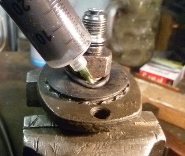 Falls man die Schläuche nicht ersetzen möchte, können sie auch dranbleiben, es ist dann etwas unhandlicher. - Anschraubbohrungen mit Lappen verstopfen.