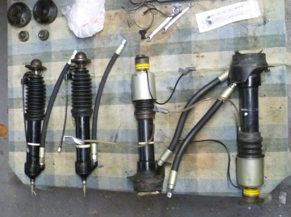 Dieser Artikel beschreibt den Ersatz der Verschleißteile: Schläuche, Staubschutzkappen der Kugelgelenke und die Faltenbälge der hinteren Federbeine. Dazu sollte man vorher feststellen, ob die Federbeine und ihre Kugelgelenke noch in Ordnung sind.