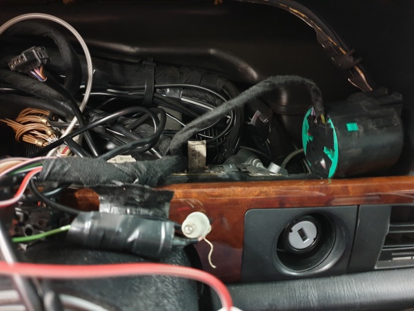 • Dann werden die 2 Kabel separiert, und nachträglich beide Stränge wieder artgerecht isoliert. Hier zeigt sich Größe und Lage des Gongs. Ebenfalls läßt sich die freizulegende Kabellänge schätzen.