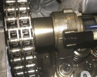 • Steuerkette und Nockenwellenrad zueinander kennzeichnen und mit Kabelbinder oder Draht sicher verbinden.